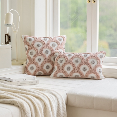 Coussin en Bouclette de Coton à Motif Écailles de Poisson de Couleur Rose