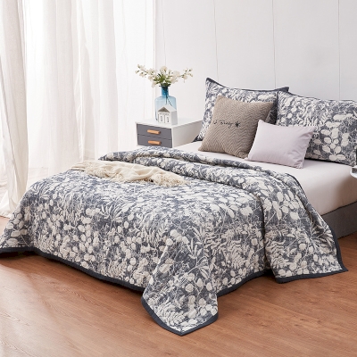 Couvre-lit Matelassé en Coton Gris avec Motif Végétal Jacquard