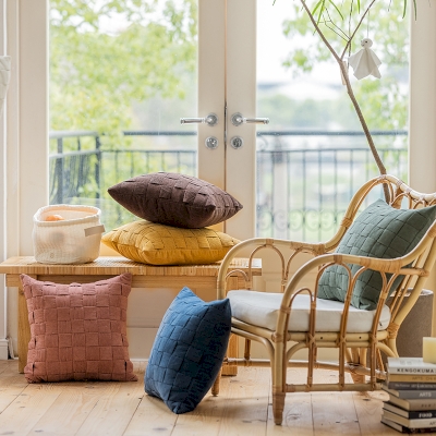 Coussin INTERLACE en Velours Côtelé, Motif de Tressage Croisé