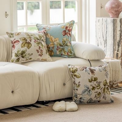 Coussin Verdure, Style Pastoral avec Motif Floral Jacquard et Finition à Bordure Roulée