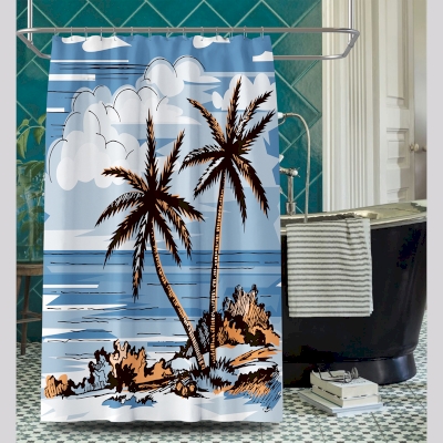Rideau de Douche Imperméable et Anti-Moisissure Plage Comique