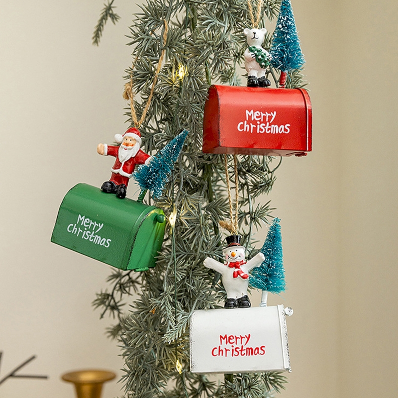 Lot de 3 Décorations à Suspendre Boîtes aux Lettres de Noël, Métal et Résine, Père Noël, Ours et Bonhomme de Neige