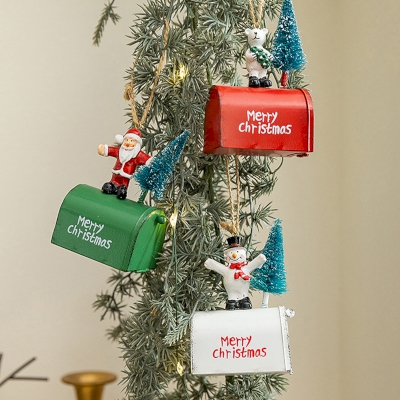 Accueil > Déco & Mode > Lot de 3 Décorations à Suspendre Boîtes aux Lettres de Noël, Métal et Résine, Père Noël, Ours et Bonhomme de Neige