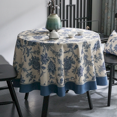 Nappe Ronde Leonard Bleu à Motif Floral Classique