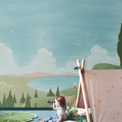 Ce papier peint panoramique intissé au style illustratif doux et poétique invite les enfants à rêver en grand. Entre les collines verdoyantes, un lac paisible, des cyprès colorés et un petit personnage contemplatif, cette scène tendre et féerique crée un univers apaisant et stimulant pour la chambre d’enfant. Facile à poser grâce à son support intissé de qualité, il allie esthétisme, imagination et praticité pour une décoration unique.