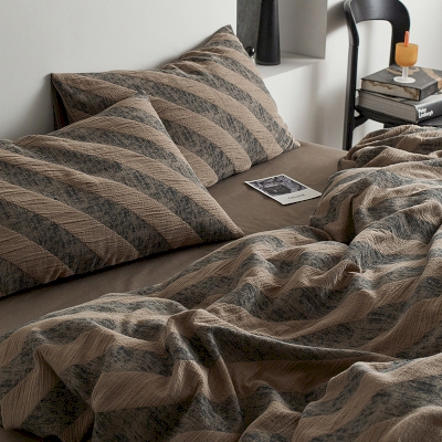 Ces parures de lit en coton lavé présentent un motif jacquard en sergé twill, offrant à votre chambre une élégance subtile et un confort incomparable.