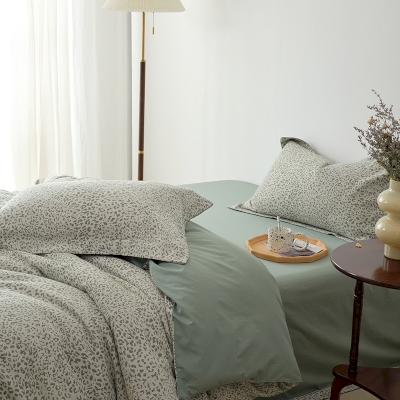 Parures de lit Vert Léopard en Coton Lavé avec Motif en Relief