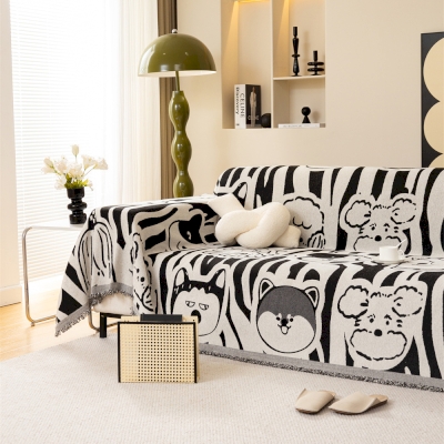 Accueil > Linge de maison > Plaid de Canapé Grande Taille en Chenille Jacquard, Motif Animaux Cartoon, Jeté de Canapé