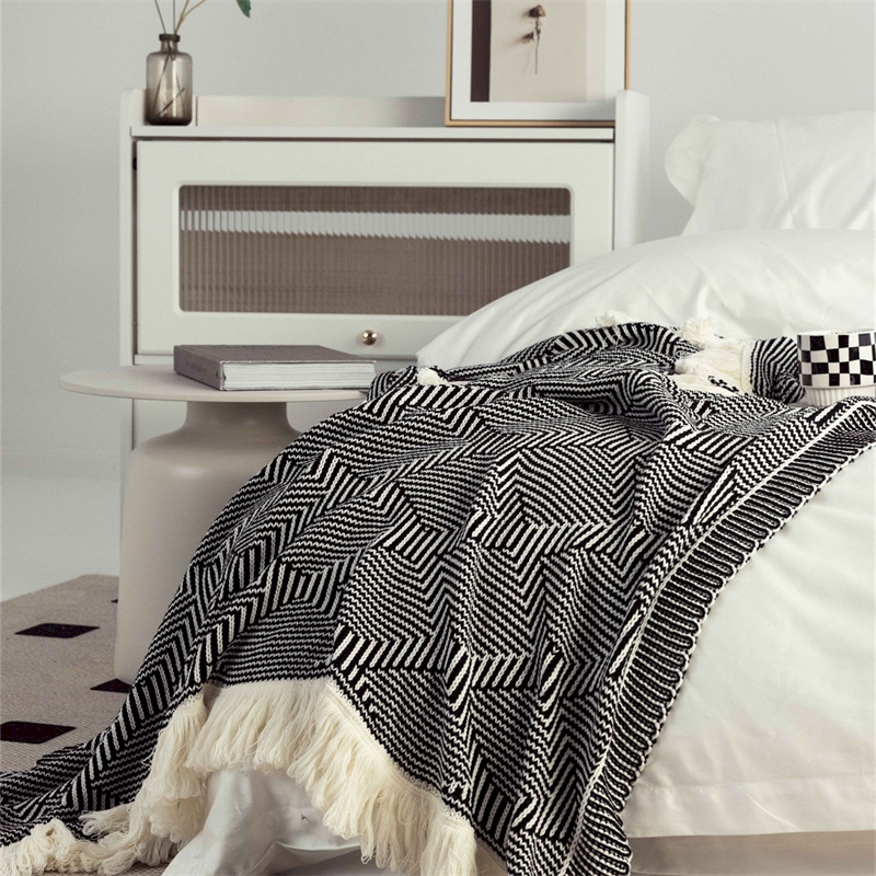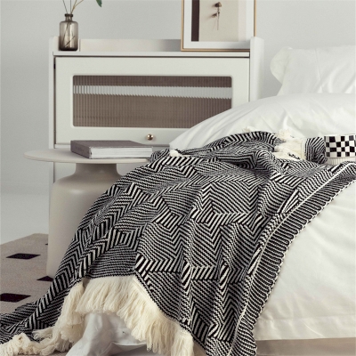 Accueil > Linge de maison > Plaid en Tricot à Motif Losanges Avec Franges, Plaid Canapé, Plaid Chaud