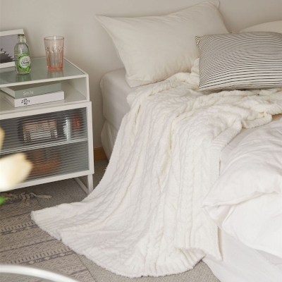 Plaid en Tricot Torsadé à Losanges Blanc, Plaid Canapé, Plaid Lit