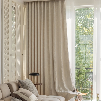 Rideau Beige en Coton et Lin Design Fluide et Textures en Relief
