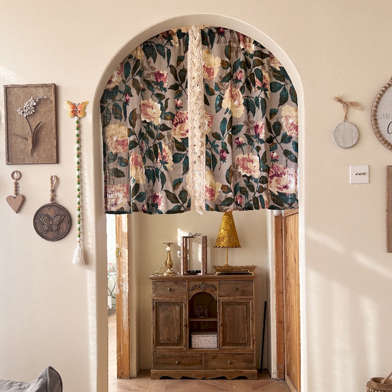 Accueil > Rideau Brise-Bise > Rideau Brise Bise aux Roses Rétro, Rideau Court, Rideau de Cuisine, Rideau Café,2 couleurs, 2 Pièces