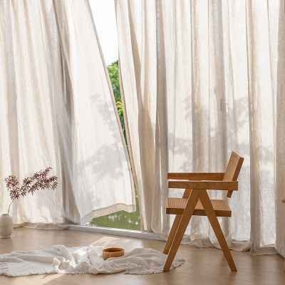 Les rideaux Carlina sont fabriqués en 100% lin, inspirés par l'esprit de confort d'une maison ouverte sur la nature. Leur tissu à la texture dense crée une atmosphère chaleureuse et naturelle.