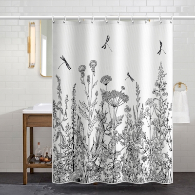 Rideau de Douche Prairie de Fleurs Noires et Blanches