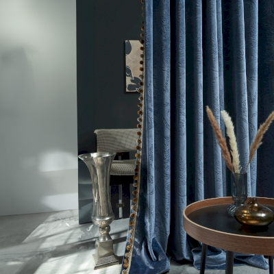 Tel un écho des palais d’antan, ce rideau en tissu jacquard de velours de soie dévoile un somptueux motif Rococo, où arabesques délicates et ornements floraux dansent sous la lumière. Son toucher, d’une douceur exquise, marie la richesse du velours à la fluidité soyeuse, offrant un drapé noble et opulent.