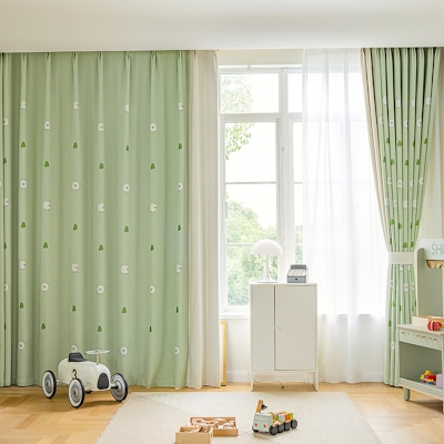 Rideau Enfant avec Broderie de Moutons Verts,Tissu en Coton Lin