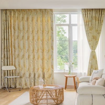 Rideau Jacquard Prunier Blanc Doré, Tissu De Taffetas