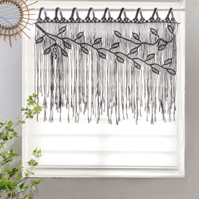 Rideau Macramé Bohème, Feuilles en Tissage Manuel, pour Fenêtre ou Porte