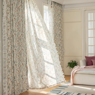 Rideau Occultant Jardin Fleur, Tissu Chenille Imprimé, Motif Floral Doux