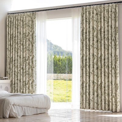 Rideaux > Rideau Sur Mesure ALVÉE, Tissu Jacquard Texturé, Motif Botanique Façon Gravure sur Bois