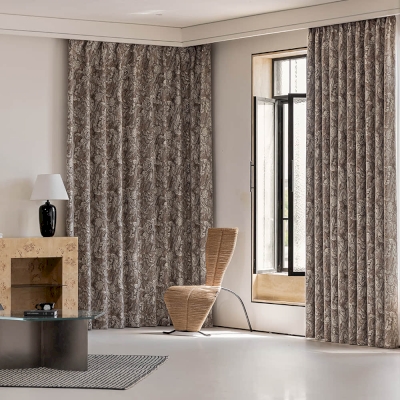 Rideau Sur Mesure Calista, Tissu Jacquard en Laine Mélangée, Motif Floral Épanoui