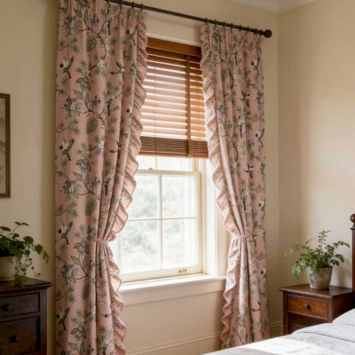 Rideau Sur Mesure ÉLISÉE, Tissu Toucher Coton-Lin, Imprimé Oiseaux & Feuillage