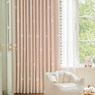 Rideaux > Rideau Sur Mesure Enfant Cumulus, Tissu Chenille, Nuage Couronné, Rose