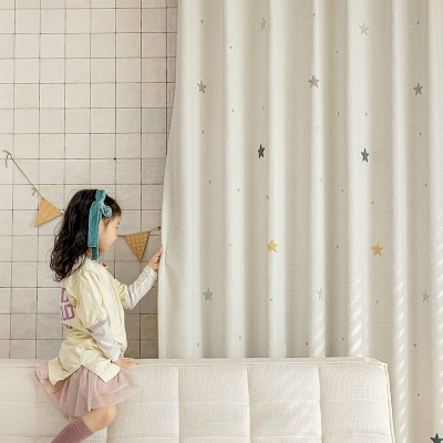 Rideaux > Rideau Sur Mesure Enfant, Toucher Coton-Lin, Broderie Étoiles