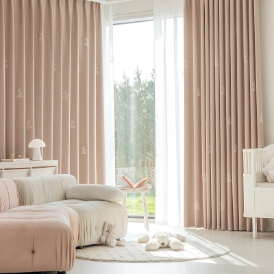 Rideau Sur Mesure Enfant, Toucher Coton-Lin, Petit Lapin Rose Brodé