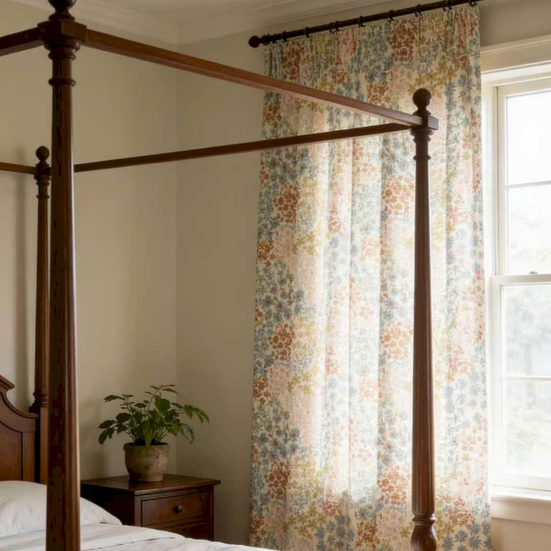 Rideau Sur Mesure LYSÉA, Tissu Toucher Coton-Lin, Imprimé Floral Délicat Multicolore