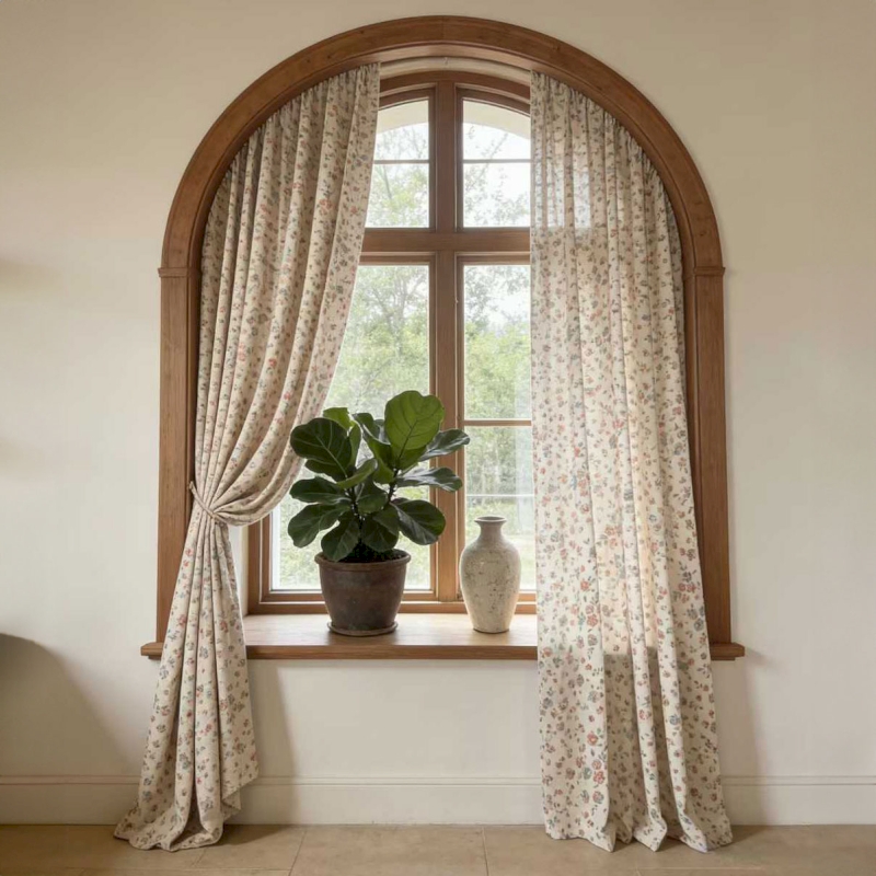 Rideau Sur Mesure MÉLISANDE, Tissu Toucher Lin, Imprimé Petites Fleurs Romantiques Sur Fond Écru