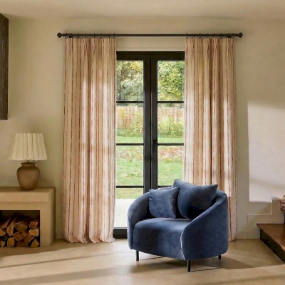 Rideaux > Rideau Sur Mesure MÉLORIN, Tissu Jacquard Texturé, Rayures en Relief et Motif Géométrique Discret