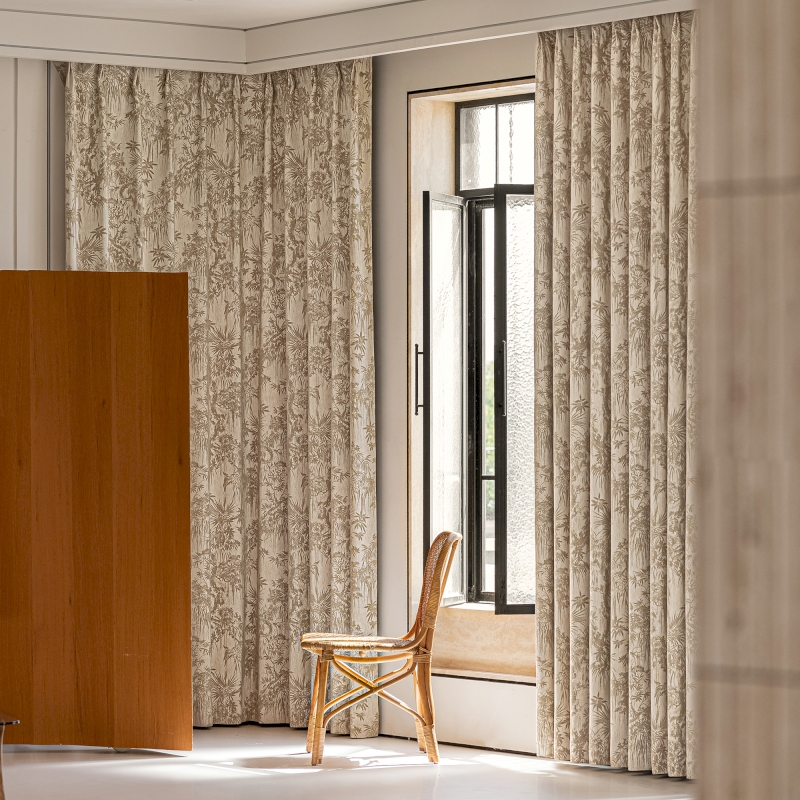 Rideaux > Rideau Sur Mesure SONGÉA, Tissu Jacquard Texturé, Motif Végétal d’Esprit Oriental Inspiré du Pin, du Bambou et du Prunier