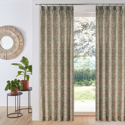 Rideaux > Rideau Sur Mesure ÉTENDUE, Toile Effet Lin, Motif de Vigne Fleurs Rétro