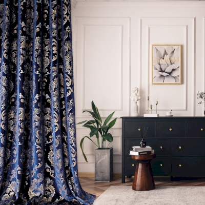 Rideau VALMONT, Tissu Velours, Motif Baroque Doré Luxueux