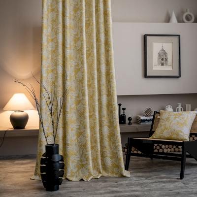 Rideau Cairns, Motif de Plantes Tropicales, Tissu Chenille, Jaune