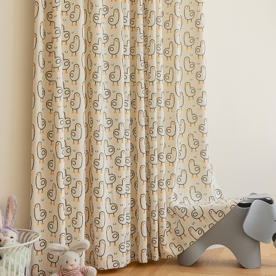 Rideaux Chambre Enfant Caneton, Tissu Mélange Polyester et Lin, Motif Imprimé