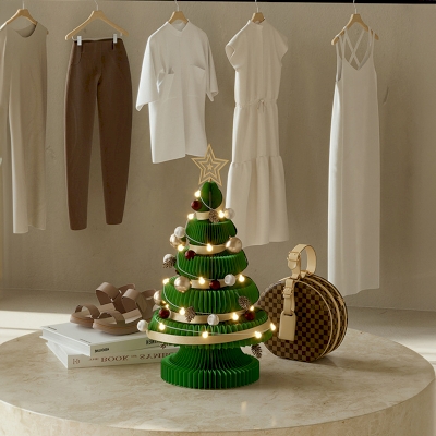 Accueil > Déco & Mode > Sapin de Noël décoratif en papier écologique et pliable avec kit d'ornements