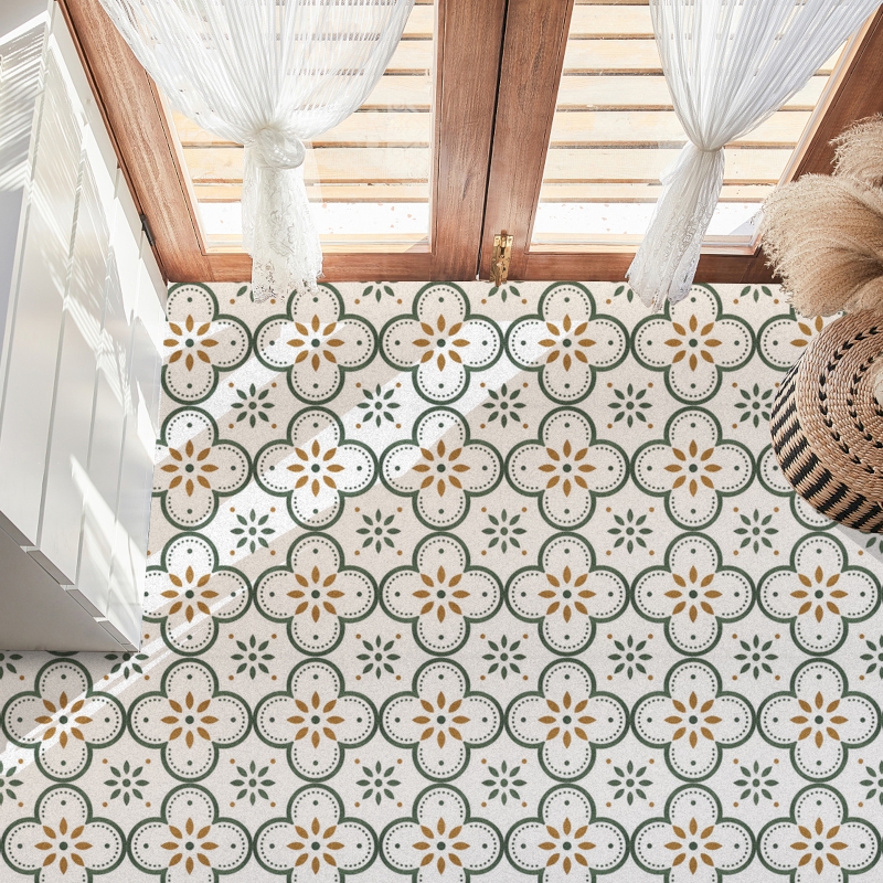 Stickers carrelage de sol anti-dérapant, Motif Carreau Méditerranéen, 12 pièces de 20x20cm et 30x30cm
