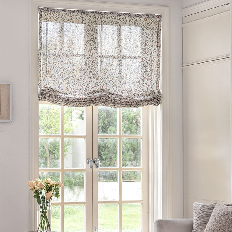 Store Bateau Sur Mesure OLIVIER, Tissu Aspect Lin, Motif Végétal aux Baies Subtiles