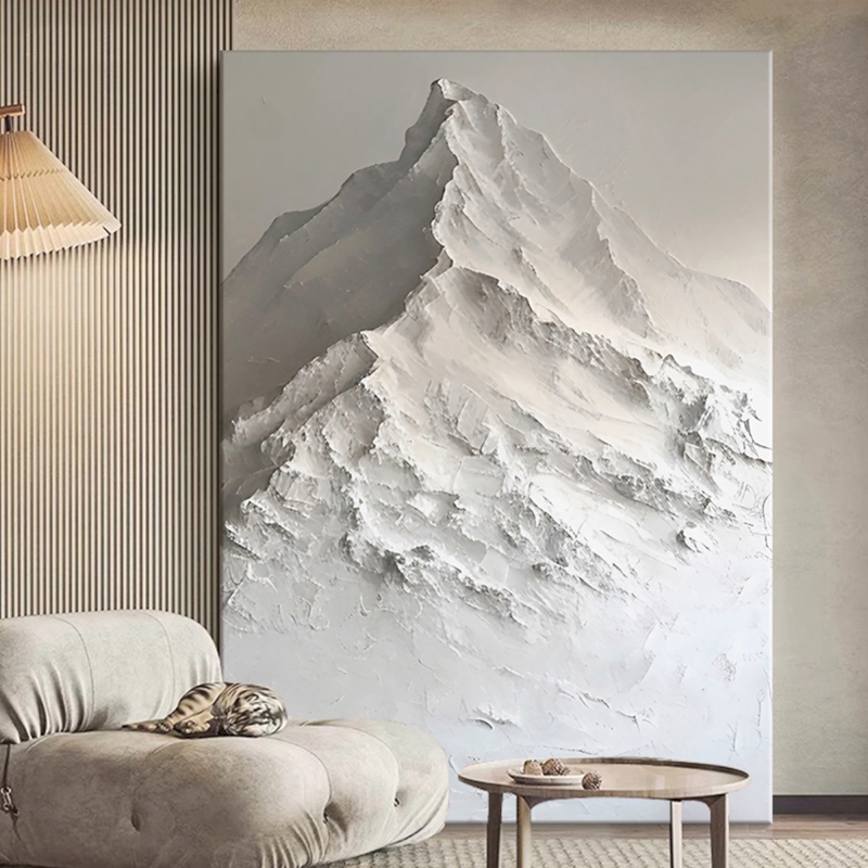 Tableau Décoratif MONTIS Sur Mesure, Peinture à l’Huile Minimaliste, Montagne Enneigée en Relief 3D, Entièrement Peint à la Main