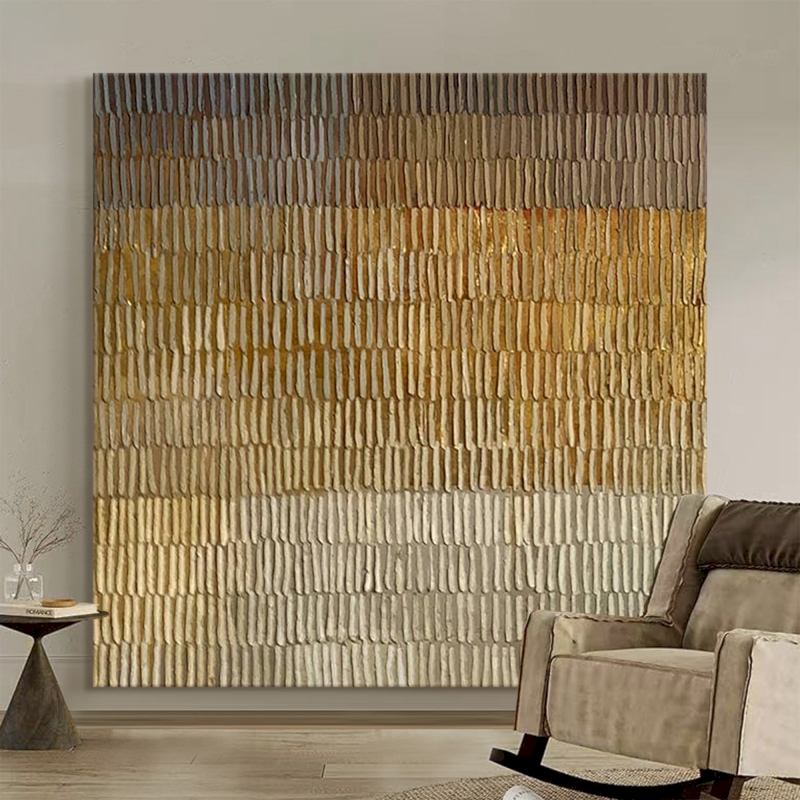 Tableau Décoratif STRATA, Peinture à l’Huile Abstraite en Relief, Dégradé de Nuances Dorées et Beiges, Fait Main sur Mesure