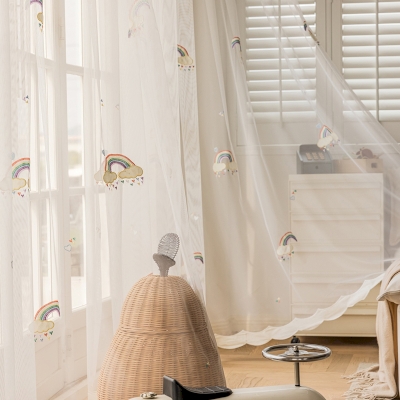 Voilage Enfant Brodé avec Bordure Ondulée Blanc et Motif Arc-en-Ciel en Relief