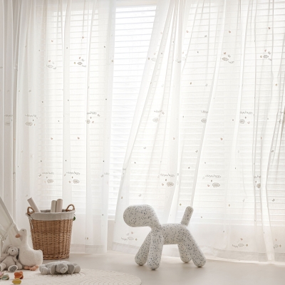 Voilage Enfant Sur Mesure CLOUDY, Tissu Effet Lin, Brodé Nuages