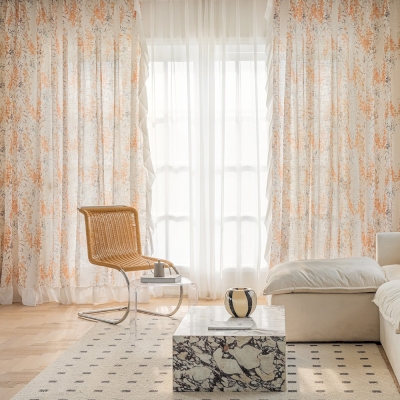 Afin de mieux restaurer le projet de conception, nous utilisons la technologie d'impression numérique haute définition allemande pour reproduire l'effet de l'aquarelle et dessinons l'élégant motif en rotin sur le tissu, qui est clair et difficile à décolorer , et restaure au maximum l' art de l' aquarelle . La fleur de vigne orange rend les gens brillants, chaleureux et sans retenue, et améliore la sensation d'espace.