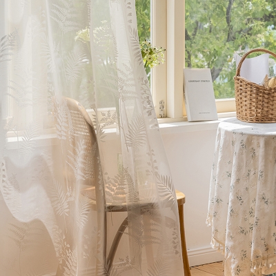 Voilage Naturel en Coton Blanc aux Motifs de Feuilles de Plantes